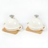 HAWOK Enameled Cast Iron Garlic Roaster with Bamboo Tray, 5-Inch, BBQ Grill Garlic Baker, Mini Cocotte, Set of 2, Oyster White