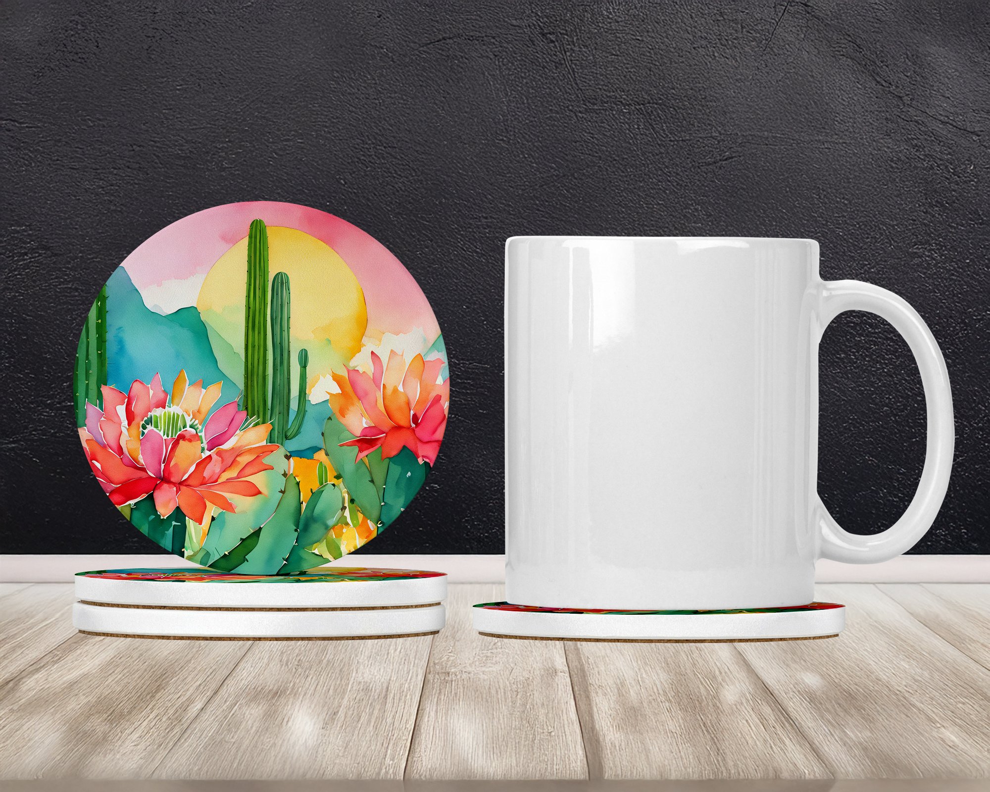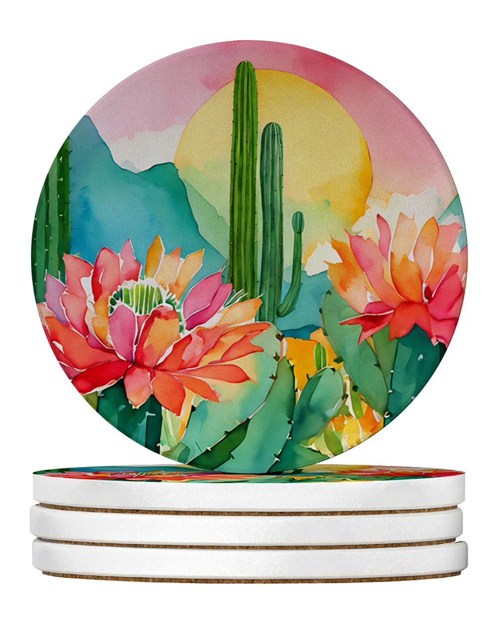Home > Arizona Saguaro Cactus Blossom in Watercolor Large Sandstone Coasters Pack of 4 Absorbent Round Coasters Decor Gifts for Men or Women, 4 in