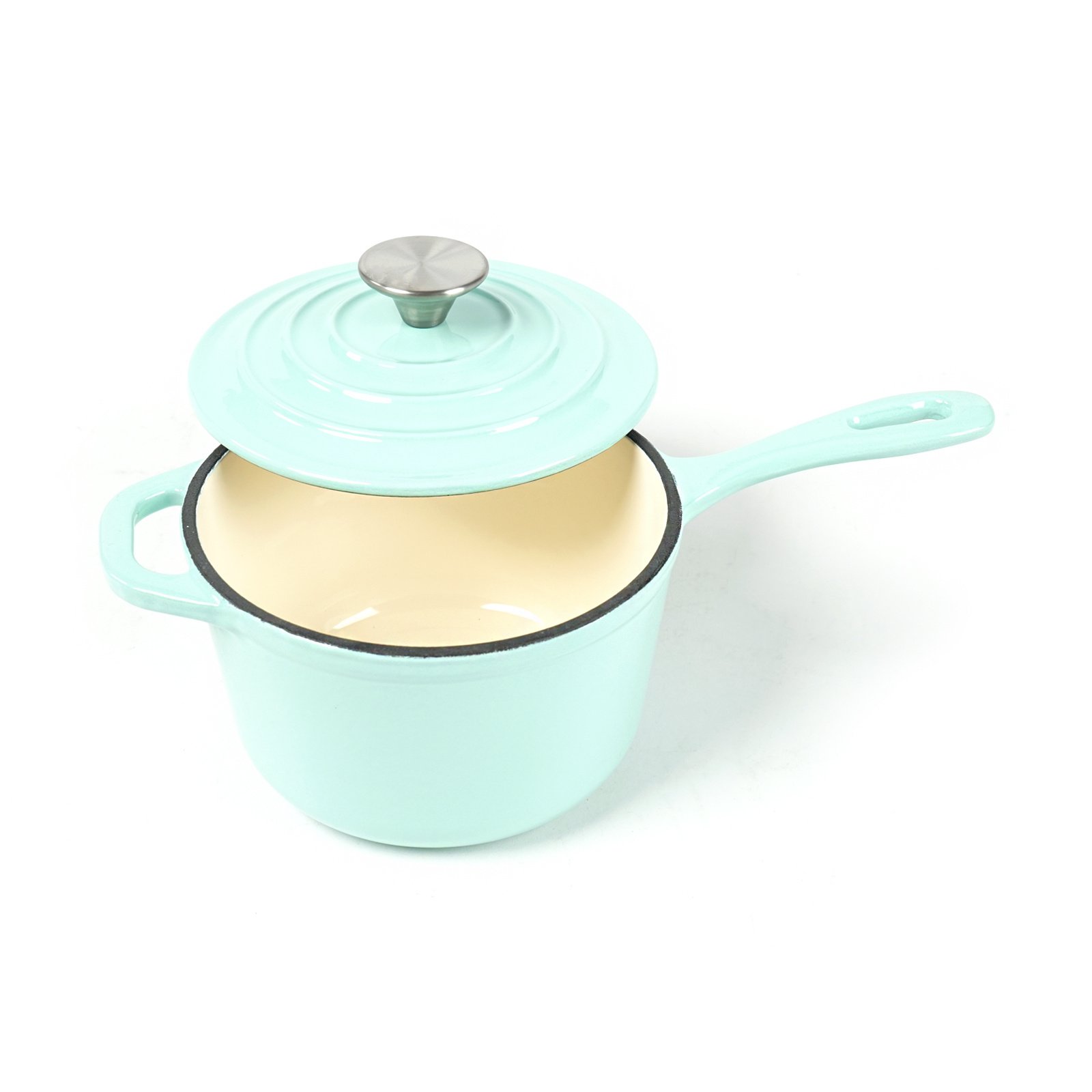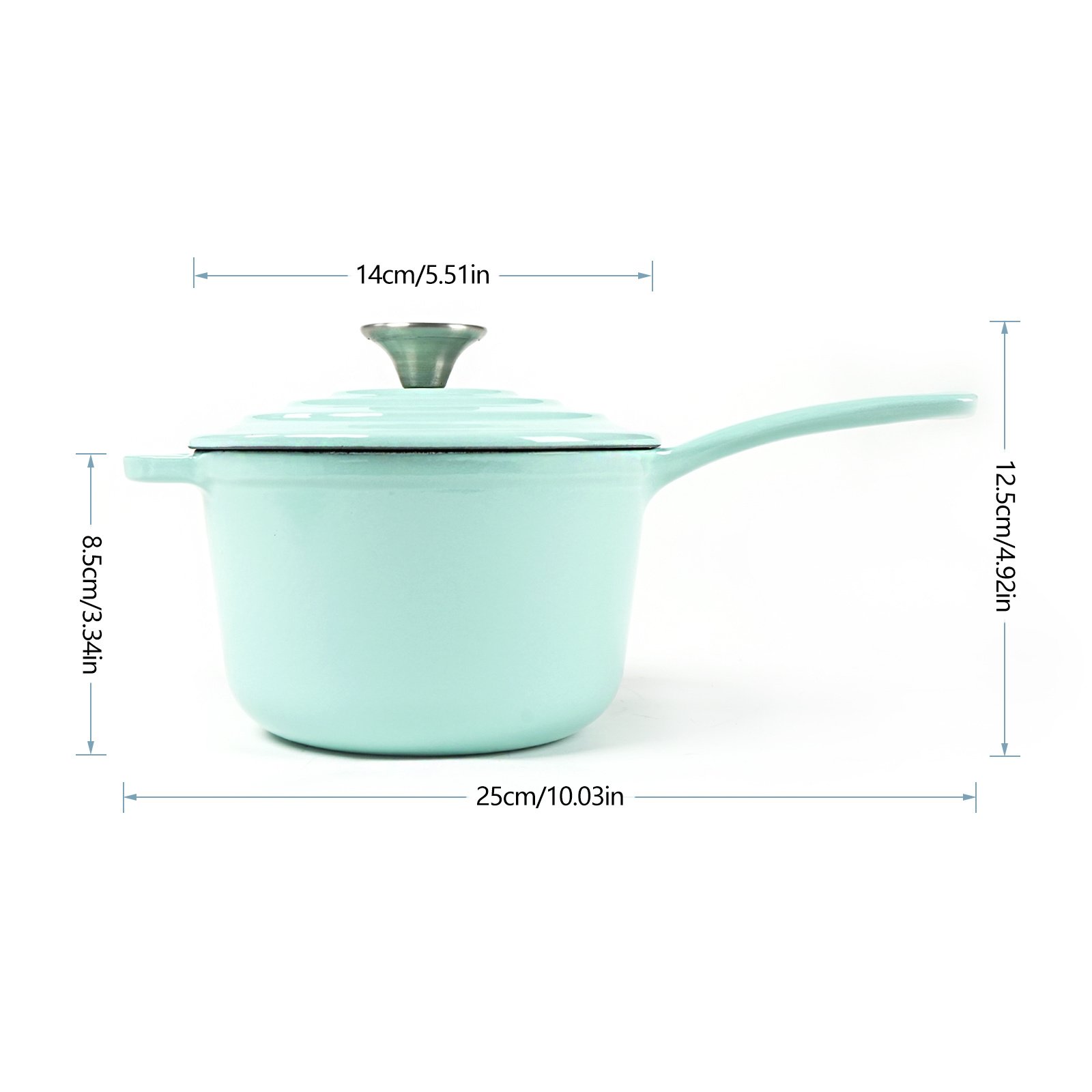 Our HAWOK cast iron sauce pans, with their excellent heat retention and ability to cook food evenly, are ideal for a variety of cooking techniques such as boiling, sautéing, braising, roasting, baking, broiling, and more. It is heat-safe even at high temperatures of up to 500°F. Our pan is coated all over with super-smooth enamel, which seals the cast iron to keep foods from sticking and crusting. The long handle provides balance and leverage and the support handle makes it easy to move around your kitchen. The wide stainless steel knob on its cast iron lid provides a secure grip and has a perfect seal fit. This avoids spillovers and locks in moisture and nutrition when cooking. The thick lid is formed by micro-pressing, so it is not easy to overflow the pot. The evenly distributed drip bumps on the lid accelerate the condensation of evaporated water vapor and drip it evenly into the food, continually basting the food throughout the cooking process. Our cast iron pan with lid deserves the love and care of a good hand wash. After each use, let it cool and wash the cookware in warm water and a mild detergent. Coming in a variety of colors, you have the freedom to choose which sauce pan is best suited for your home. With its glossy and vibrant porcelain finish, it is sure to add life to your kitchen!