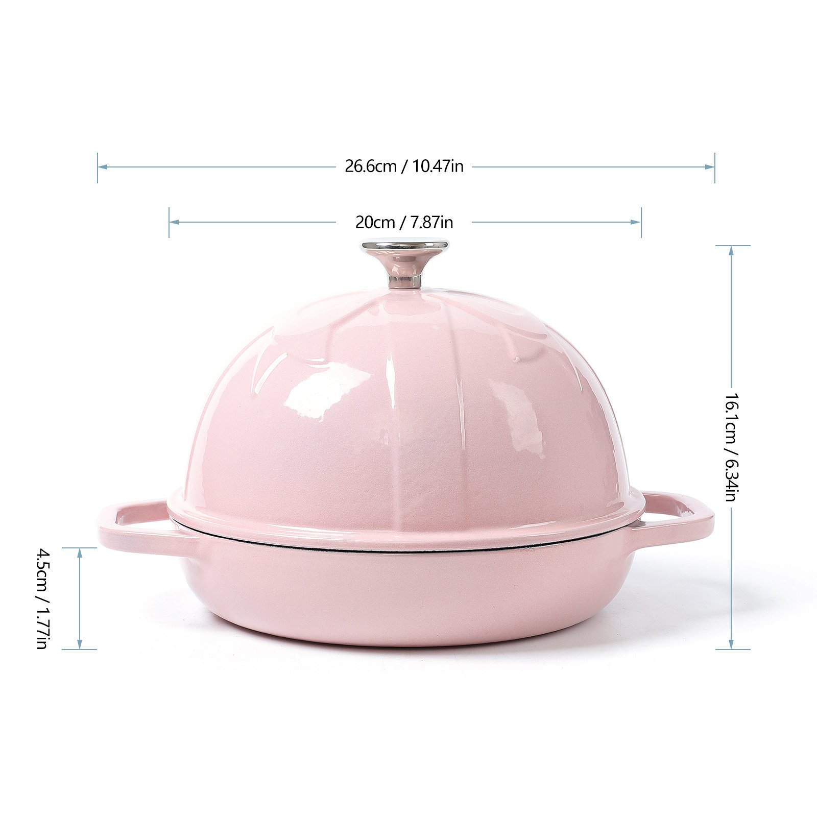 Tired of scrubbing and scraping to remove crusty dried-on food from your cast iron cookware? The inner wall of the base is coated with non-stick enamel, which seals the cast iron to keep foods from sticking and crusting. Due to its ultra-smooth, virtually nonstick cooking surface, the HAWOK bread cloche is effortless to clean. Its tight-fitting lid effectively seals in moisture and flavor and creates a thick, crispy crust and a light, airy inside. The lid features stainless steel knobs that are safe at all oven temperatures, making it easy to move. The low-profile base has raised ridges for even browning and marks the loaf with the lollipop. It can also be used as a skillet. In addition, you will receive two ergonomic ring handles that provide a comfortable, safe grip and ease of movement from kitchen to table. The cast iron delivers superior and even heats distribution. The glossy enamel is chip, crack, and stain-resistant. This enamel cookware comes in a variety of gorgeous colors and styles to suit any kitchen. This HAWOK bread cloche is the perfect present for weddings, housewarmings, birthdays, holidays, and more.